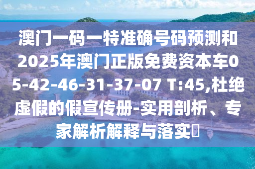澳門(mén)一碼一特準(zhǔn)確號(hào)碼預(yù)測(cè)和2025年澳門(mén)正版免費(fèi)資本車(chē)05-42-46-31-37-07 T:45,杜絕虛假的假宣傳冊(cè)-實(shí)用剖析、專家解析解釋與落實(shí)?