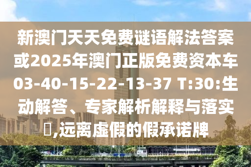新澳門(mén)天天免費(fèi)謎語(yǔ)解法答案或2025年澳門(mén)正版免費(fèi)資本車03-40-15-22-13-37 T:30:生動(dòng)解答、專家解析解釋與落實(shí)?,遠(yuǎn)離虛假的假承諾牌