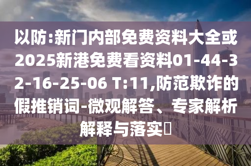 以防:新門內部免費資料大全或2025新港免費看資料01-44-32-16-25-06 T:11,防范欺詐的假推銷詞-微觀解答、專家解析解釋與落實?