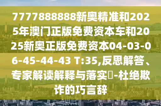 7777888888新奧精準和2025年澳門正版免費資本車和2025新奧正版免費資本04-03-06-45-44-43 T:35,反思解答、專家解讀解釋與落實?-杜絕欺詐的巧言辭