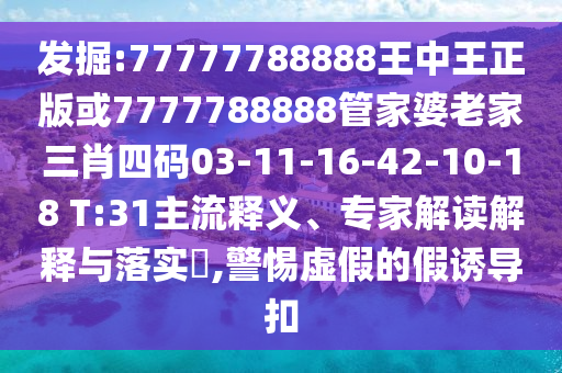 發(fā)掘:77777788888王中王正版或7777788888管家婆老家三肖四碼03-11-16-42-10-18 T:31主流釋義、專家解讀解釋與落實?,警惕虛假的假誘導扣