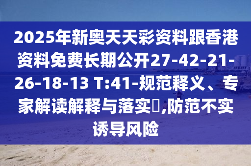 2025年新奧天天彩資料跟香港資料免費長期公開27-42-21-26-18-13 T:41的規(guī)范釋義、專家解讀解釋與落實?