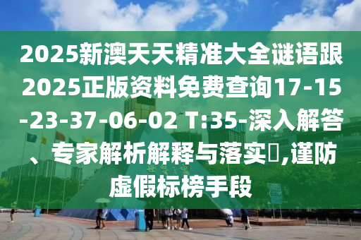 2025新澳天天精準(zhǔn)大全謎語跟2025正版資料免費(fèi)查詢17-15-23-37-06-02 T:35-深入解答、專家解析解釋與落實?,謹(jǐn)防虛假標(biāo)榜手段